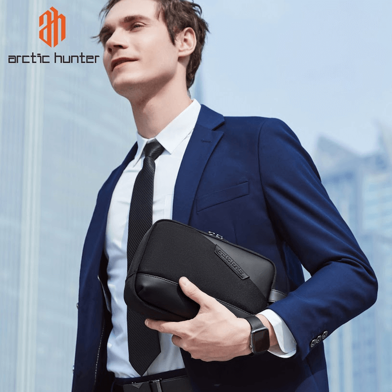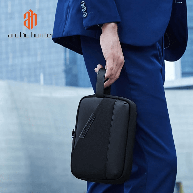 Uma bolsa de mão unissexo compacta, durável e funcional, projetada para o uso diário e para transportar itens essenciais de forma organizada.