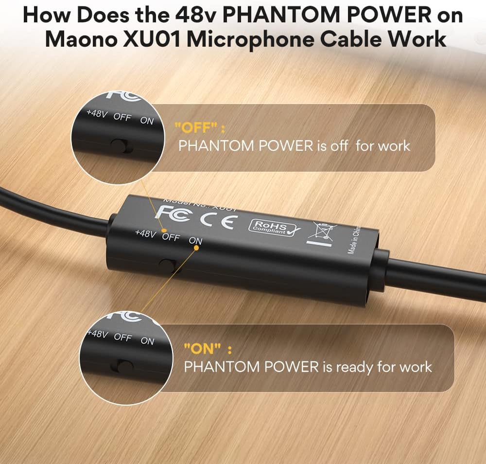 Alimentação Phantom de 48V no Maono XU01:
