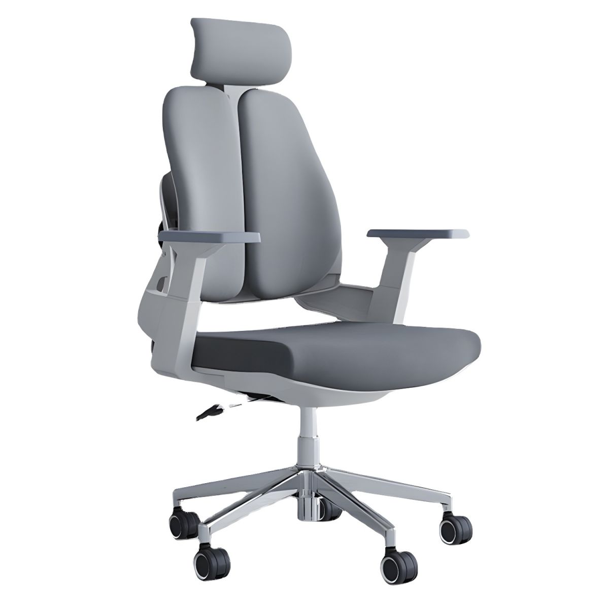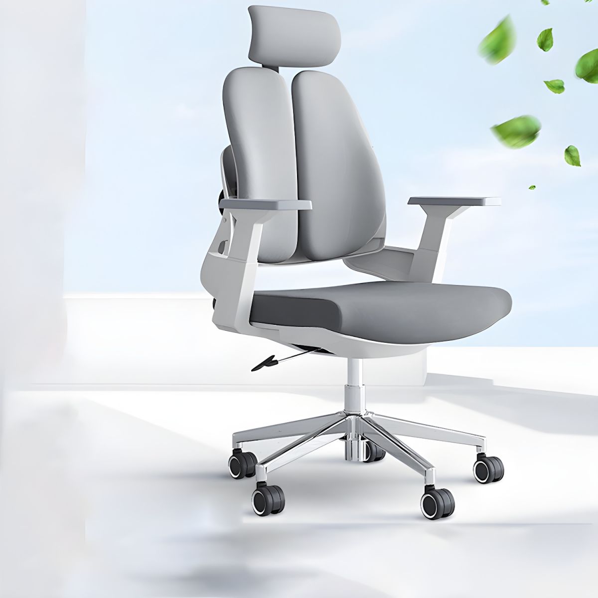 Um modelo específico de cadeira ergonômica giratória, executiva ou de trabalho, com características que visam proporcionar conforto e suporte para o corpo, especialmente a zona lombar, ao longo do dia.