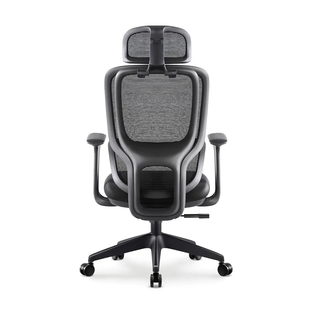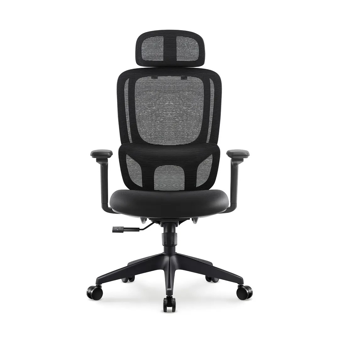 Cadeira de escritório com encosto alto em malha e apoio de cabeça ajustável 3D.