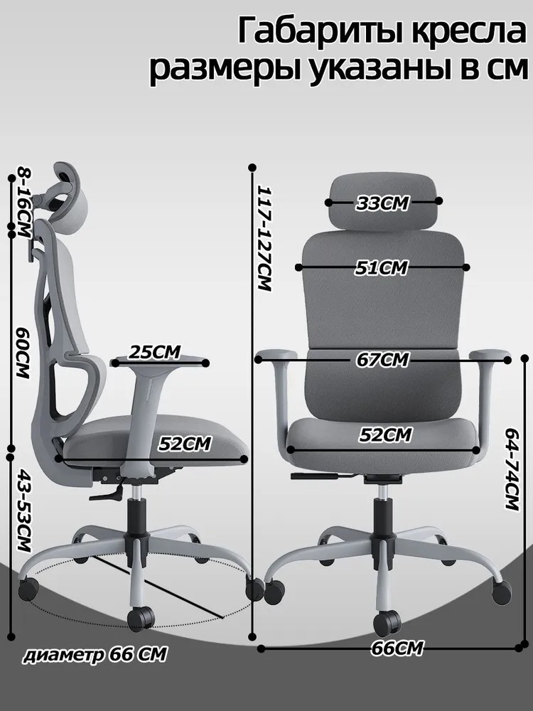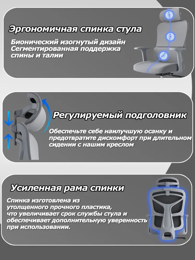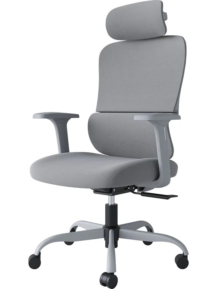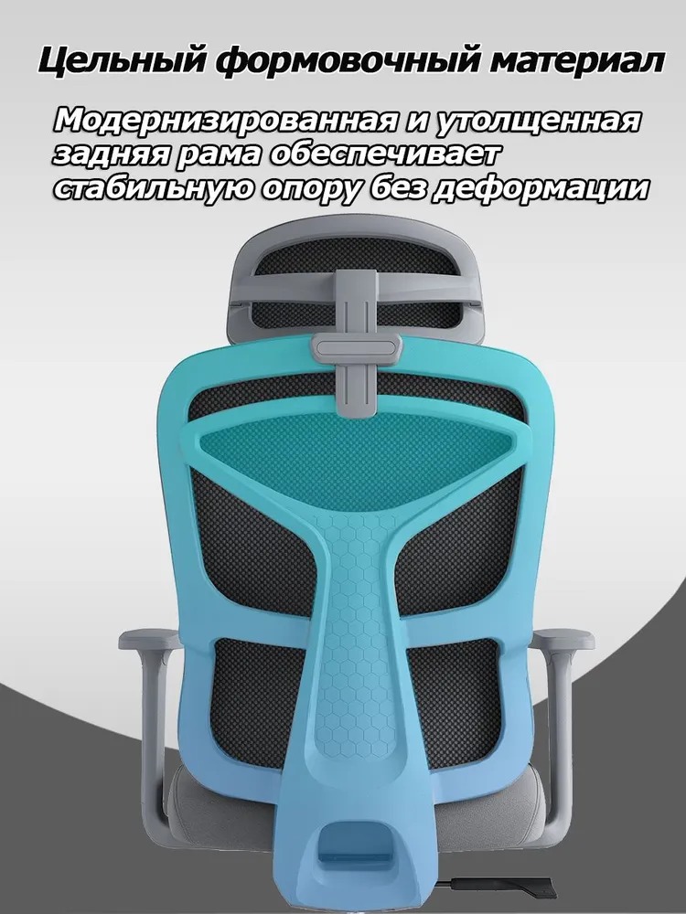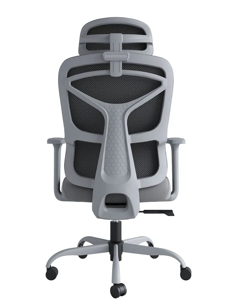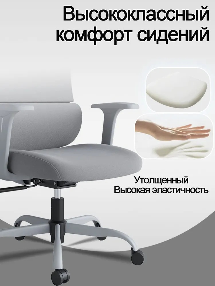 Possui malha de textura de lã premium, assento com almofada de espuma de alta densidade e apoio de cabeça moldado.