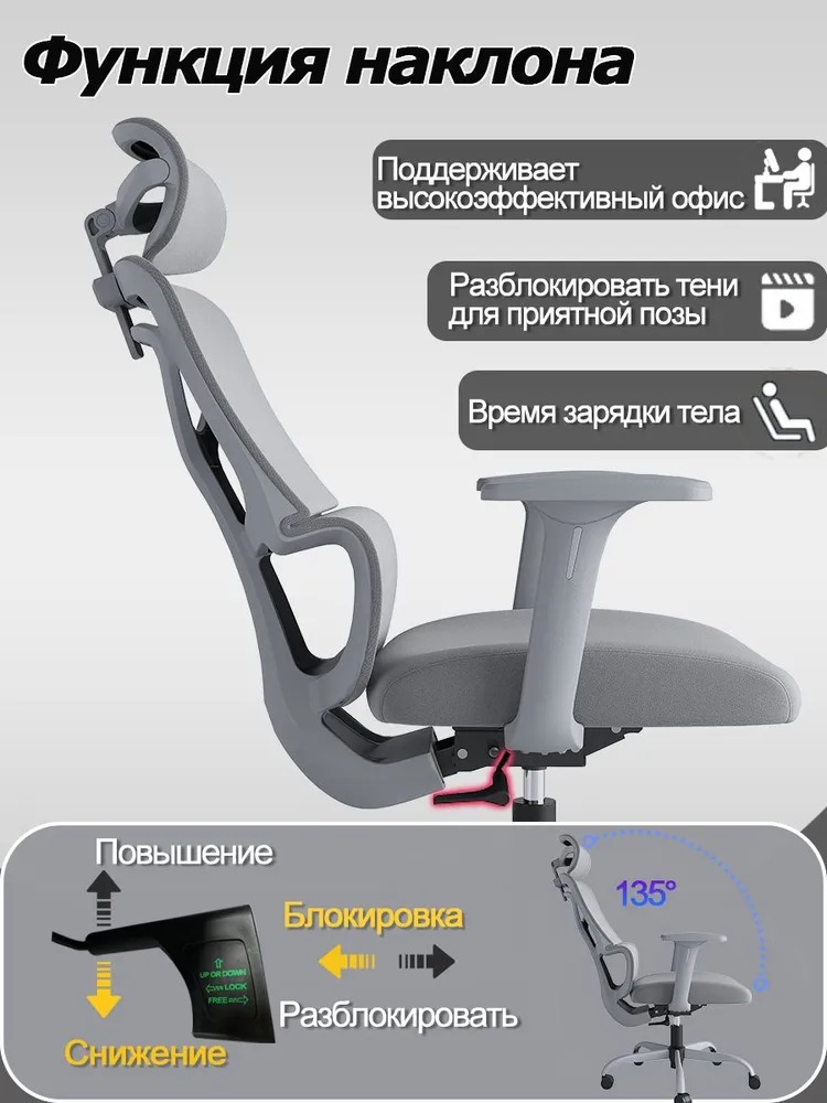 Permite ajustar a altura do assento e encosto, e a tensão do encosto.