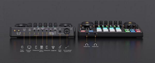 - Compatível com microfones dinâmicos e condensadores