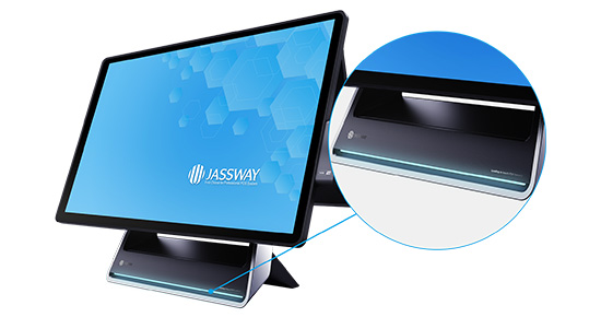 - Tela Principal: 15,6″ LED com toque capacitivo, ideal para interatividade e uso dinâmico