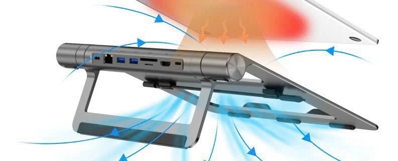 Um suporte ergonômico para laptop que também funciona como uma docking station USB-C 8 em 1.