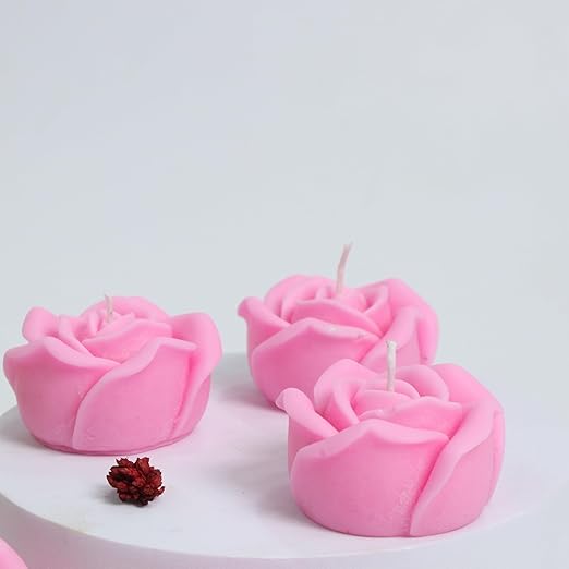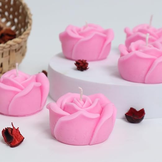 Uma vela rosa em formato de rosa